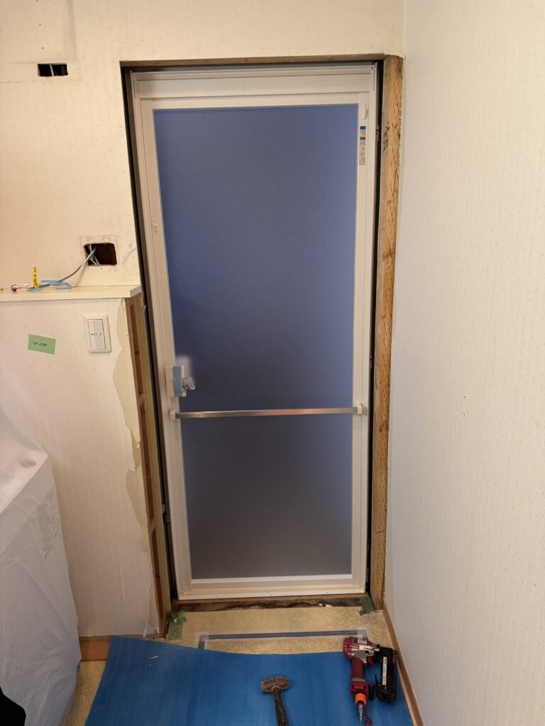 最後にドア枠の取り付けとクロス・クッションフロアの張り替えを行い完了です👍